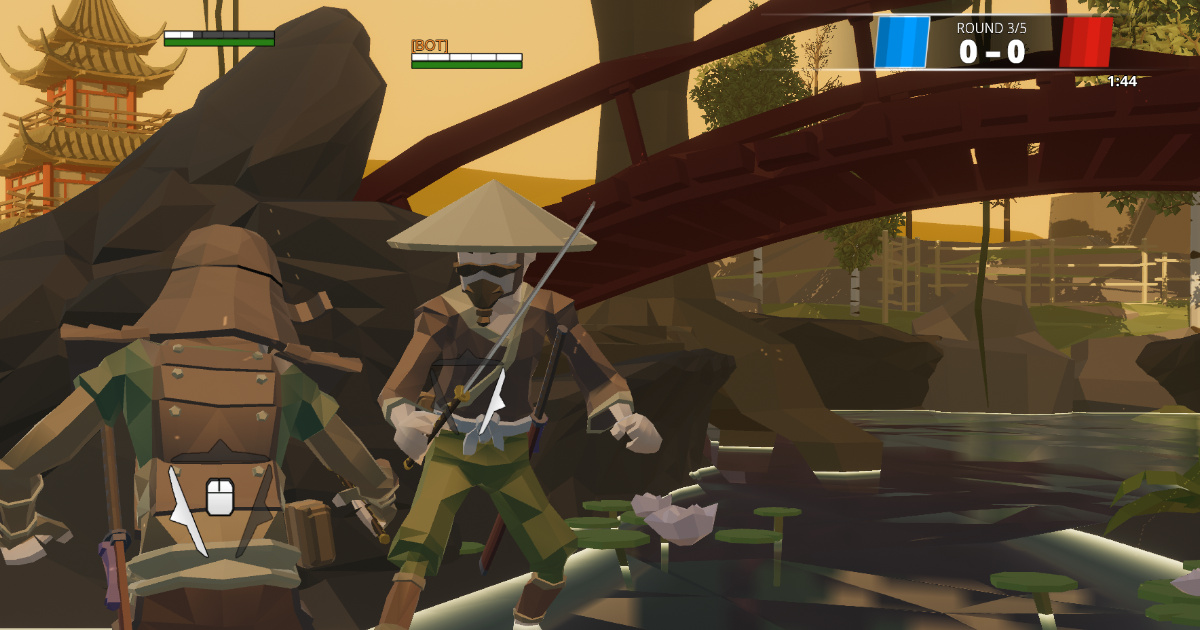 *WASD* = Motion *left mouse* = Light Attack *right mouse* = Heavy Attack *middle mouse* = Guard Break *LCtrl* = Guard Mode *LAlt* = Switch Target in Guard Mode *mouse* = Change Stance *space* = Evade/Roll *f* = Taunt1 *g* = Taunt2