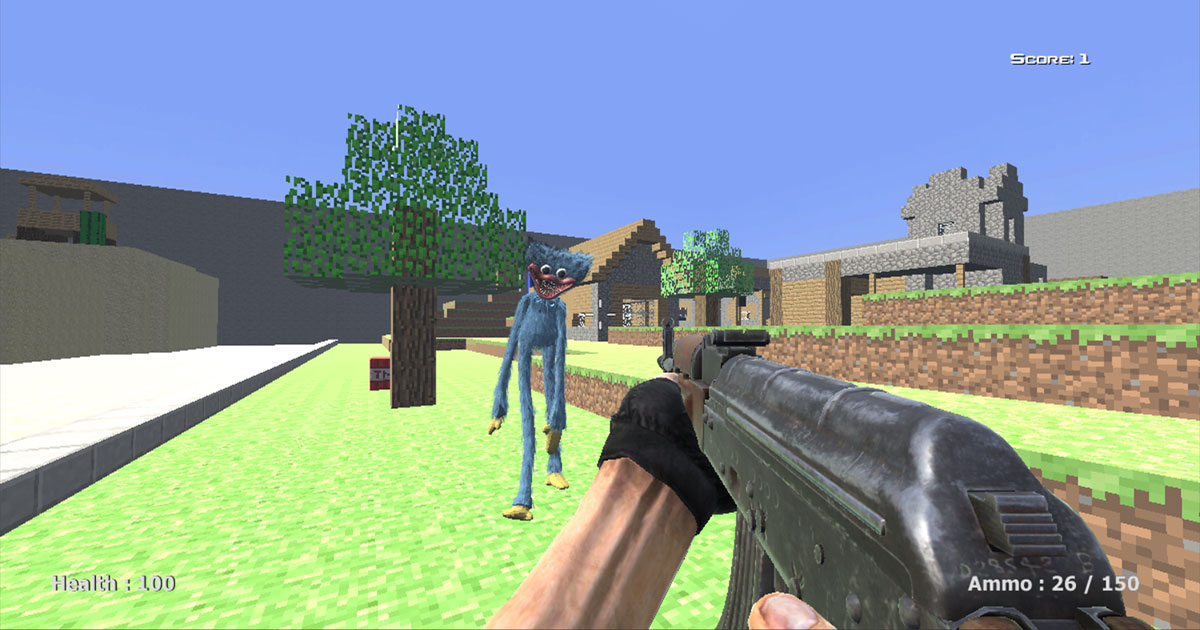 Poppy Strike 2 presents a vast array of armaments and a Minecraft-inspired landscape where your objective is to eliminate all approaching huggy wuggy dolls and strive to endure each wave to claim victory and access new firearms.