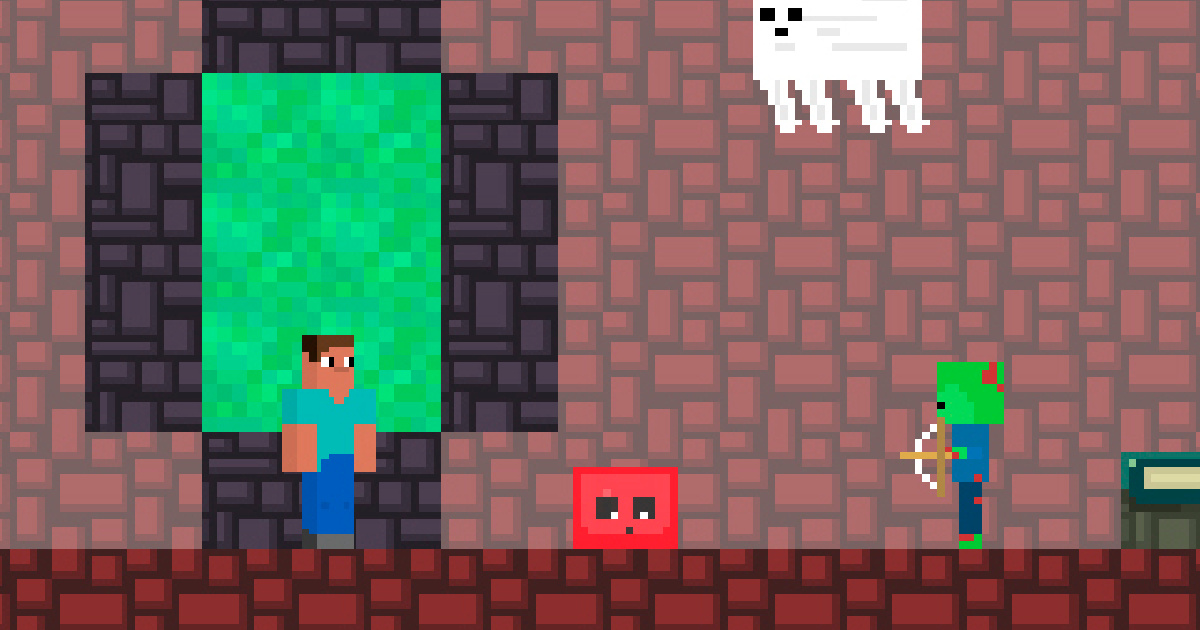 You must assist the adorable Steven in traversing the portal to arrive at the emerald chest within the crimson shadows. Don’t hesitate; aid him in reaching the ballot box. Exercise caution, as perilous flying creatures, slimes crawling on the terrain, and zombies loosing arrows are poised to confront you.